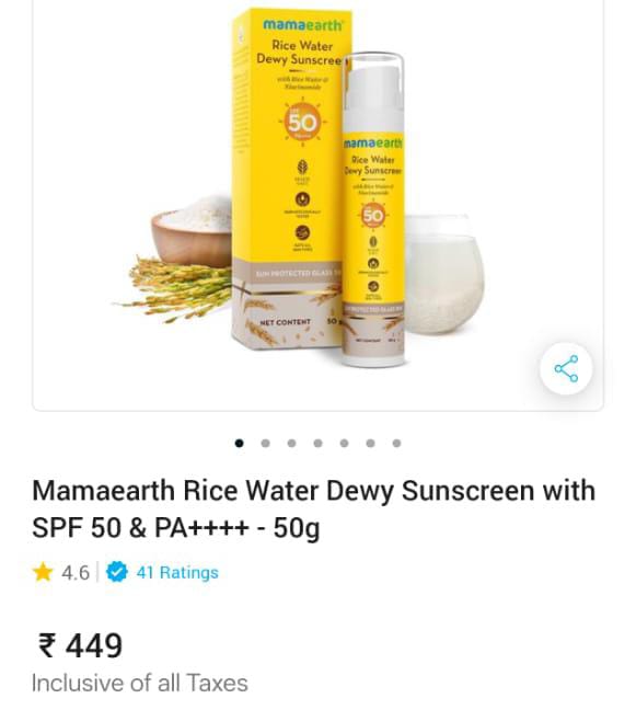 Results of Mamaearth Rice Water Dewy Sunscreen